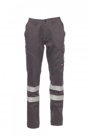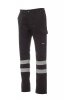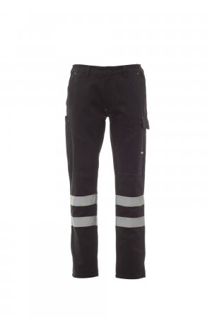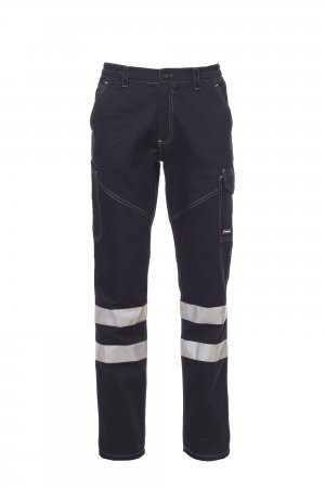 Žieminės universalios kelnės su 1 kat. šviesą atspindinčiomis juostomis, šoninis elastinis diržas ir juosmens diržas, užtrauktukas su plastikine saga. Dvi priekinės klasikinės kišenės, viena šoninė kišenė su UŽRAKTO SISTEMA, viena kišenė matavimo juostai, dvi užpakalinės kišenės – viena atvira, o kita su atvartu ir lipuku, kontrastingi intarpai ir dygsniai, šviesą atspindinčios juostelės ant užpakalinės kišenės. Trigubo dygsniavimo siūlės. Suderinti dvigubi viršutiniai dygsniai ir dygsniai su fluorescencine geltona spalva, kontrastinga bartakiniams dygsniams, siekiant sukurti „Total Black“ efektą.
