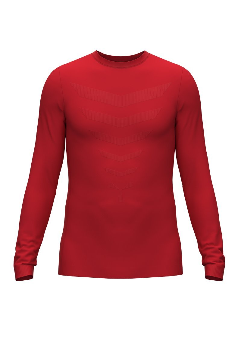 Tehniskais džemperis ar garām piedurknēm un augstu apkaklīti, izgatavots no elpojoša un elastīga auduma. Cauruļveida struktūra, viegli piegulošs. Vijumi uz krūtīm, gurniem un muguras. Propellera motīvs priekšpusē.