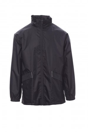 Unisex ūdensnecaurlaidīga jaka, nolokāma kapuce, elastīgas aproces, divas kabatas ar līplenti, atstarojoši profili un ieliktnis mugurpusē, iekšpusē: bez oderes, sudraba efekts (izņemot versiju dzeltenā krāsā). Individuāli iesaiņota maisā ar sānu siksnu.
