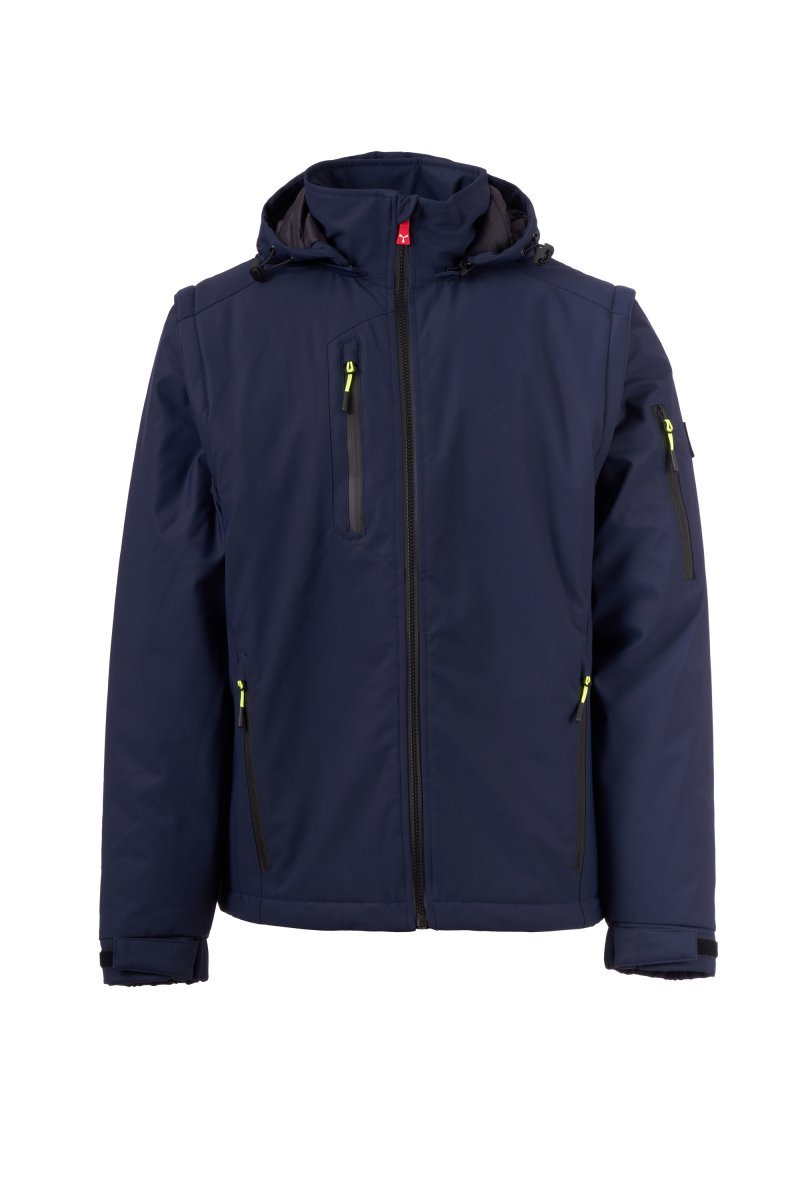Ūdensnecaurlaidība 8000 mm H₂O, ūdens tvaika vadīšanas ātrums 5000 g/m² 24 h. Trīs slāņu Softshell vīriešu jaka ar vidēji siltu polsterējumu (140 g/m²), noņemamām piedurknēm, SBS rāvējslēdzēju ar metāla galviņu ar daļējas bloķēšanas funkciju un pielāgotu aizdari. Noņemama kapuce ar savilkšanas aukliņu. Uz kapuces aizmugurējās apakšējās daļas un muguras lejasdaļā — atstarojošas līnijas. Elastīgas piedurknes, kuras iespējams pielāgot ar līplentes stiprinājumu. Divas sānu kabatas ar rāvējslēdzēju, krūšu kabata, kuras rāvējslēdzējam ir īpašs pārklājums, un kreisās rokas kabata, kurā iešūta ar rāvējslēdzēju aiztaisāma kabata, kas paredzēta pildspalvai. Fluorescējoši aukliņu savilcēji. Viena uzšūta kabata iekšpusē ar līplentes stiprinājumu. Apakšmalā auklu savilcēji ar pielāgotiem bloķētājiem.