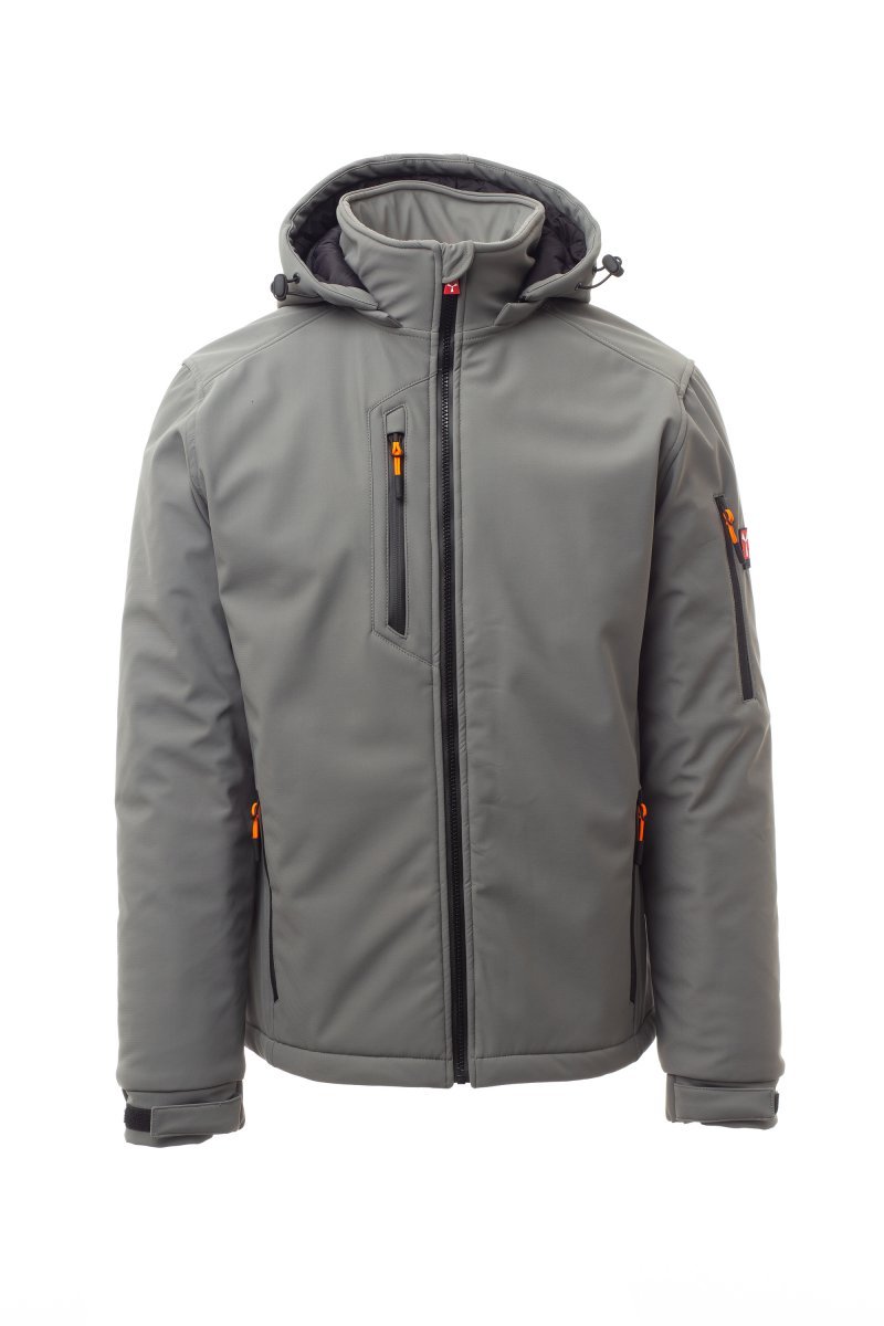 Ūdensnecaurlaidība 8000 mm H₂O, ūdens tvaika vadīšanas ātrums 5000 g/m² 24 h. Trīs slāņu Softshell vīriešu jaka ar siltu polsterējumu (160 g/m²), polārflīsa ieliktņiem apkaklē, SBS rāvējslēdzēju ar metāla galviņu ar daļējas bloķēšanas funkciju un pielāgotu aizdari. Noņemama kapuce ar savilkšanas aukliņu. Apkakles odere ar polārflīsa elementiem sānos. Uz kapuces aizmugurējās apakšējās daļas un muguras lejasdaļā — atstarojošas līnijas. Elastīgas piedurknes, kuras iespējams pielāgot ar līplentes stiprinājumu. Divas sānu kabatas ar rāvējslēdzēju, krūšu kabata, kuras rāvējslēdzējam ir īpašs pārklājums, un kreisās rokas kabata, kurā iešūta ar rāvējslēdzēju aiztaisāma kabata, kas paredzēta pildspalvai. Fluorescējoši aukliņu savilcēji. Viena uzšūta kabata iekšpusē ar līpslēdzēja stiprinājumu. Apakšmalā auklu savilcēji ar pielāgotiem bloķētājiem.