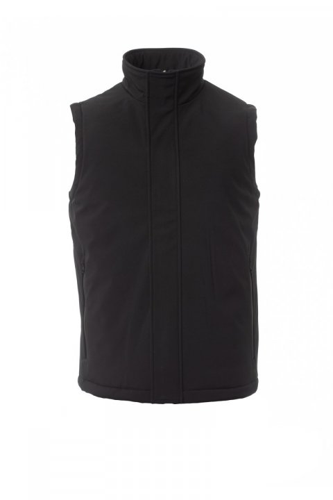 Ūdensnecaurlaidība: 8000 mm H₂O, ūdens tvaika vadīšanas ātrums: 5000 g/m² 24 h. Trīs slāņu Softshell vīriešu veste ar siltu polsterējumu (160 g/m²), līplentes aizdari, rāvējslēdzēju ar metāla slīdni ar daļējas bloķēšanas funkciju un pielāgotu satveršanas āķi. Divas ārkabatas, kuru rāvējslēdzējiem ir īpašs pārklājums, viena iekšpusē uzšūta kabata ar līplenti, viena planšetdatoram paredzēta iekškabata ar līplenti. Kakla aizmugurējā daļā — pielāgota uzšuve ar atstarojošu elementu. Apakšmalā auklu savilcēji ar personalizētiem bloķētājiem.