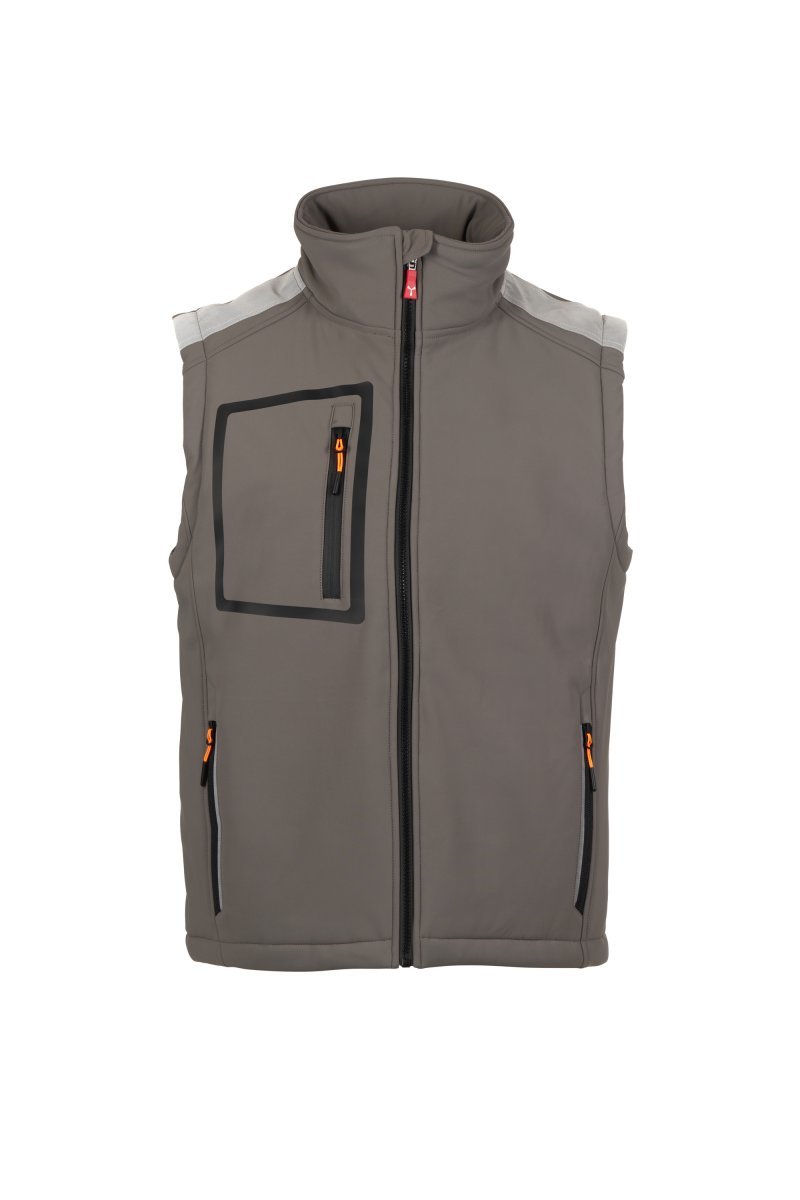 Ūdens necaurlaidība 8000 mm H₂O, ūdens tvaika vadīšanas ātrums 5000 g/m² 24 h. Trīs slāņu Softshell vīriešu veste ar siltu polsterējumu (160 g/m²), kurai ir polārflīsa ieliktņi apkaklē, SBS rāvējslēdzējs ar metāla vai pielāgoto aizdari un daļējas bloķēšanas funkciju. Apkakles odere ar polārflīsa elementiem sānos. Uz plecu daļas un muguras lejasdaļas — atstarojošas līnijas. Piekausēta krūšu kabata, kas aizdarāma ar rāvējslēdzēju, kuram ir īpašs pārklājums. Divas sānu kabatas, kas aizdarāmas ar atstarojošu rāvējslēdzi. Fluorescējoši striķu savilcēji. Divas iekškabatas: viena formēta krūšu kabata ar rāvējslēdzēju labajā pusē un viena planšetei paredzēta kabata kreisajā pusē, kas aizdarāma ar līplenti. Apakšmalā auklu savilcēji ar pielāgotiem bloķētājiem.