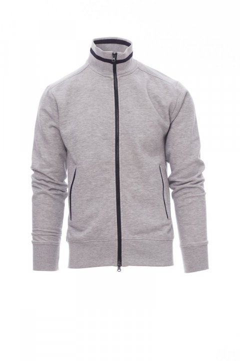 Men’s sweatshirt with full, contrasting coloured plastic SBS zip with double metal pull. Rib collar with contrasting trim, side pockets with contrasting trim, fitted sleeves, two outer pockets with contrasting zip, stretch rib cuffs and hem, reinforced seams.