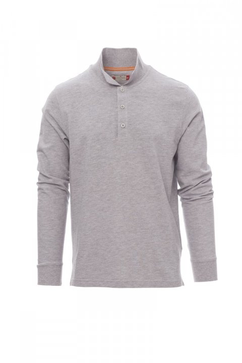 Men’s long-sleeved polo shirt with 3, matching, mother-of-pearl effect buttons, rib collar and cuffs, side vents, concealed collar stitching with contrasting tape, stretch seams, side reinforcement tape, inner neck tape