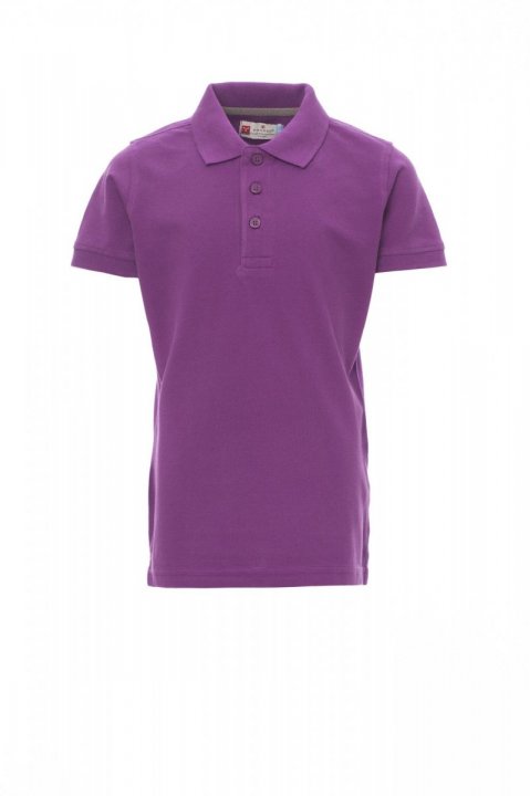 Bērnu polo krekls ar īsām piedurknēm, 3 pieskaņotas perlamutra pogas, rievota apkakle un piedurkņu malas, sānu ventilācijas atveres, apslēptas apkakles šuves ar kontrastējošu lenti, staipīgas vīles, pastiprinājuma lente sānos, iekšējā kakla daļas lente.