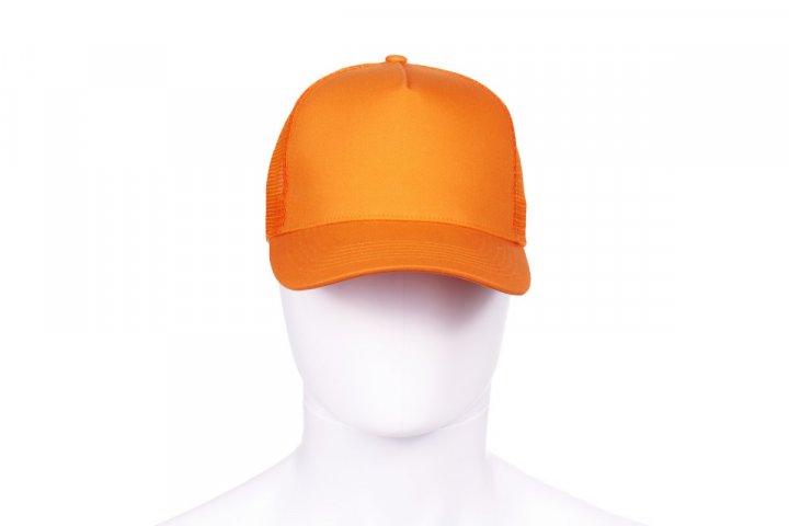 Unisex 5 paneļu cepure no kokvilnas sarža un tīklveida auduma sānu un aizmugures paneļos labākai gaisa caurlaidspējai. Iepriekš izliekts sejsegs, izšūtas cilpiņas un regulējama aizdare ar plastmasas sprādzi. Kartona kārbā ir 4 25 gabalu izvietošanas kastītes, kas iepakotas polietilēna maisiņos ar 5 cepurēm katrā, kopā 100 gabali. Minimālā pārdodamā vienība: 5 gab. (1 polietilēna maisiņš).