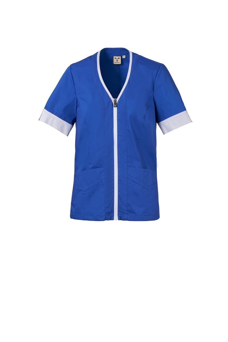 Sieviešu darba mētelis ar īsām piedurknēm, izgatavots no kokvilnas poplīna, poliestera un Lycra® T400® apvienojumā ar ērtu tīkliņveida audumu mugurdaļas sānos, lai atvieglotu kustības un uzlabotu gaisa caurlaidību. V veida kakla izgriezums ar kontrastējošas krāsas vīli. Centrālā rāvējslēdzēja aizdare un kontrastējošs “daļēji automātiskas bloķēšanas” slīdnis. Divas zemas uzšūtas kabatas ar atloku. Piedurknes ar kontrastējošām vīlēm, uz vienas no tām ir raksturīgais divtoņu Payper propellera izšuvums.