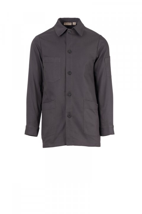 Moderns un praktisks vīriešu īsais darba mētelis ar garām piedurknēm, izgatavots no kokvilnas sarža auduma un Lycra® T400®, izcili elastīgs un gaisu caurlaidīgs. Krekla apkakle, kreisā piedurkne ar divu nodalījumu kabatu, pogu aizdare priekšpusē, 3 uzšūtas kabatas, no kurām viena ir ar simbolisku dažādu toņu propellera izšuvumu un iekšēju viedtālruņa kabatu. Augšējā kabata ir sadalīta daļās, no kurām viena tiek izmantota kā pildspalvas turētājs. Regulējama pusjosta ar pogām aizmugurē, lai labāk piegulētu. Šķēlums apakšdaļā, kas atvieglo pārvietošanos.