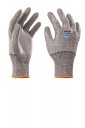Pret sagriešanu noturīgi 13G HPPE šķiedras cimdi, trikotāžas aproce, poliuretāna plaukstas pārklājums. Īpašības: izturīgi. Stiprās puses: D līmeņa noturība pret griezumiem (TDM griezums)/A4 (ANSI/ISEA), komforts, saķere, jutība, precizitāte. Pielietojums: asu, sausu vai nedaudz eļļainu priekšmetu apstrāde un montāžas darbi. Minimālā pārdodāmā vienība: 1 ducis (12 pāri). Malas krāsa atšķiras atkarībā no izmēra.