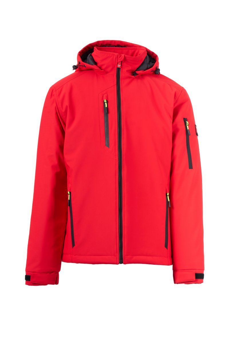 WP 8000 mm H₂O, WVT 5000 g/m² 24h. Машка „soft-shell“ јакна од 3 слоја со средна подлога (140 g/m²), со затворање со SBS патент со метален лизгач со функција на полуавтоматско заклучување и персонализиран влечкач. Отстранлива капуљача со прилагодлива врвка. Ретрорефлектирачки ленти на долниот дел од грбот и на задниот дел од капуљачата. Еластични манжетни, прилагодливи со чичак. Два странични џеба со патент, еден џеб на градите со водоотпорен патент и еден џеб на левиот ракав со интегриран држач за пенкала, затворен со патент. Флуоресцентни влечкачи. Внатрешен џеб со хоризонтален отвор, со затворање на чичак. Долен дел прилагодлив со персонализирани стопери.