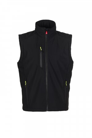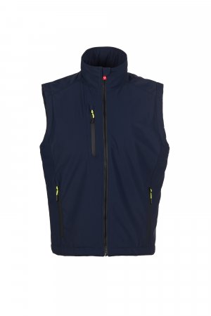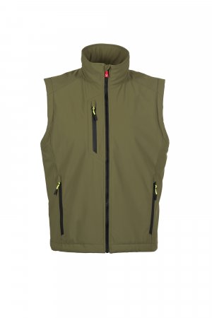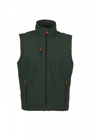 WP 8000 mm H₂O, WVT 5000 g/m² 24h. Машки „soft-shell“ елек од 2 слоја со лесна подлога (100 g/m²), со затворање со SBS патент со метален лизгач со функција на полуавтоматско заклучување и персонализиран влечкач. Ретрорефлектирачка лента на долниот дел од грбот. Два странични џеба со патент и еден џеб на градите со водоотпорен патент. Флуоресцентни влечкачи. Внатрешен џеб со хоризонтален отвор, со затворање на чичак. Долен дел прилагодлив со персонализирани стопери.