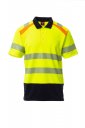 Поло маица со кратки ракави, двобојна, со висока видливост. Јака со 3 копчиња, со ребра и покриени шевови, контрастен отвор. Ребрести јака. Сегментирани и термички запечатени ретро-рефлектирачки ленти на рамениците, ракавите и половината, за да се олесни движењето. Странични отвори.