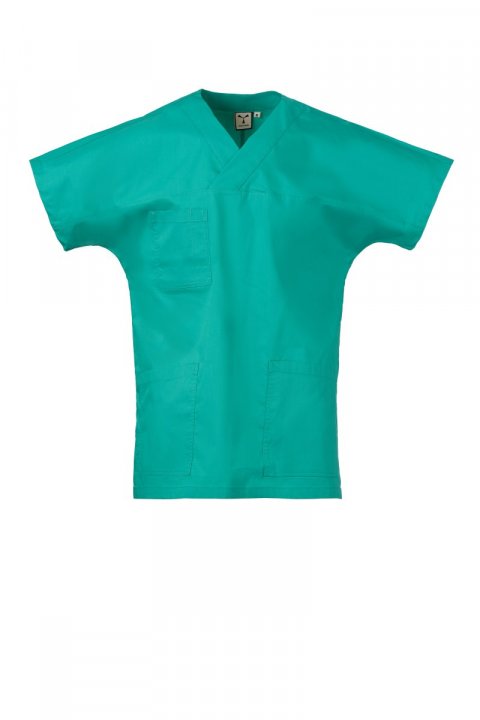 Машка кошула со кратки ракави и V-деколте изработена од памучен поплин, полиестер и Lycra® T400®, со одлични еластични и дишливи својства. Хоризонтален крој на предниот дел. Џеб на градите со преграда за пенкало. Два долни, широки аплицирани џеба. Задниот дел со централен шев. Странични процепи за полесно движење.