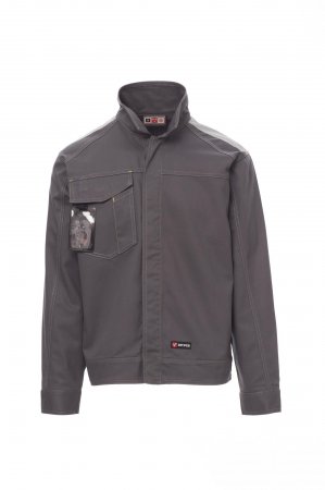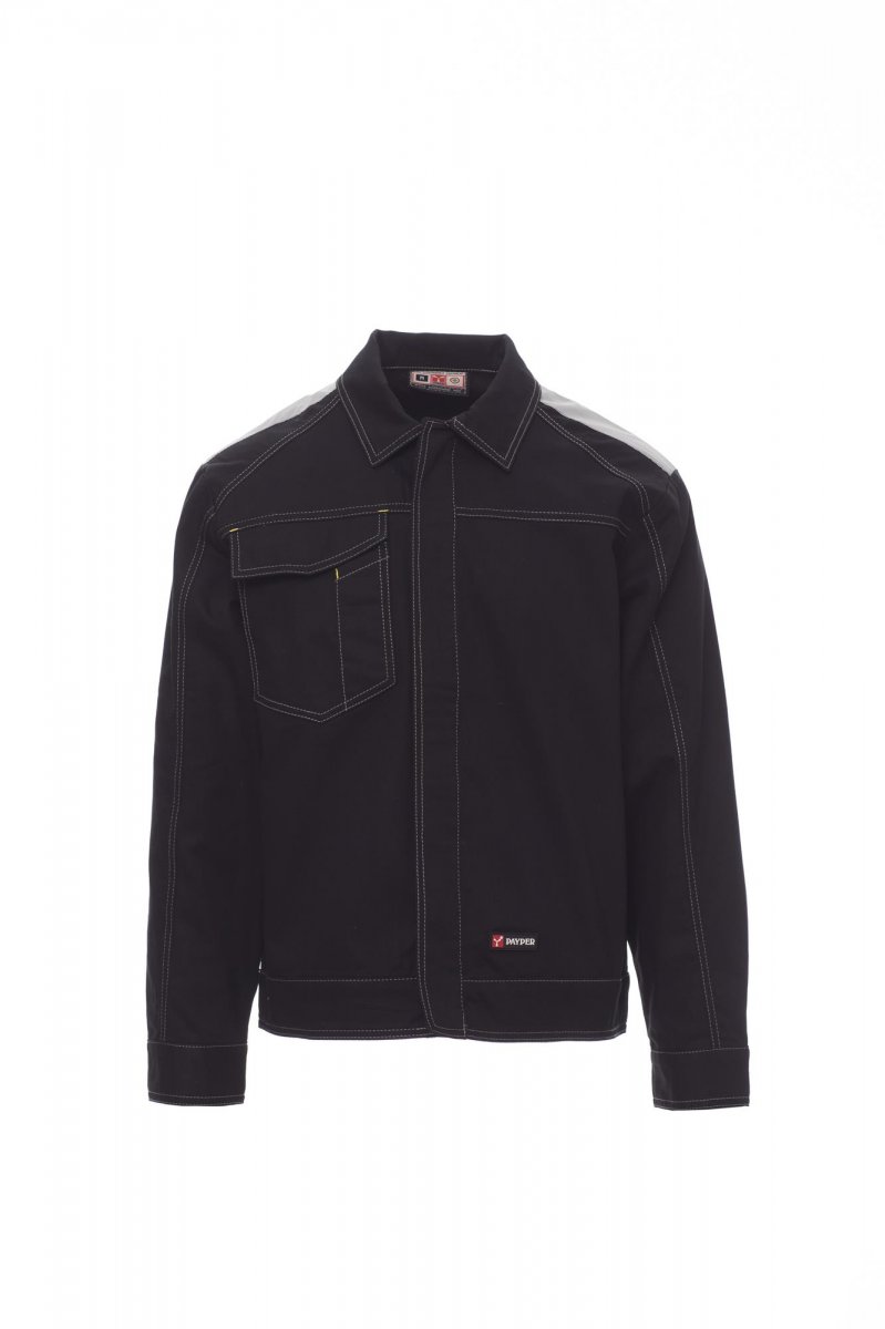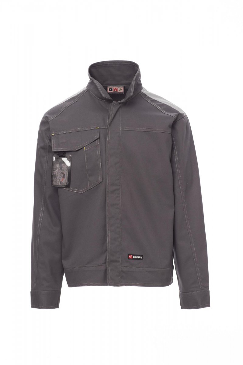 Ongewatteerde jas met contrasterend stiksel, reflecterende inzetstukken op de schouders en rug. Nauwsluitend model in jeansstijl, voorsluiting met kunststof knopen en overslag. Zakje voor smartphone, afneembare badgehouder en penhouder in de borstzak met overslag en klittenband. Polssluiting met knoop en verstelbare taille met klittenband.