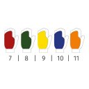 Handschoenen met handpalm van wit volnerf geitenleer, elastische gebreide rug, in een ander kleur per maat. Elastische gebreide manchet, met klittenbandsluiting. Kenmerken: zacht. Sterke punten: comfort, gebruiksvriendelijk, gevoelig. Toepassingsgebieden: lichte precisiewerkzaamheden in droge omstandigheden.