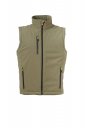 WP 8000 mm H₂O, WVT 5000 g/m² 24 t. Trelags, soft-shell-vest med midels polstring (140g/m²) til herre, SBS-glidelåslukking med «semi-auto lock»-metallglider og tilpasset trekker. Refleksstripe på korsrygg. To sidelommer med glidelås, en brystlomme med belagt glidelås. Fluorescerende trekkere. En innvendig passlomme med borrelåslukking. Justerbar kant med tilpassede stoppere.