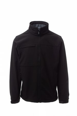 WP 8000 mm H₂O, MVP 5000 g/m² 24 t. Trelags, tofarget soft-shell til herre med tapet SBS-glidelås. Hette som kan brettes inn i kragen. Justerbare mansjetter med gummierte håndleddsstropper og borrelås. To sidelommer med glidelås, en brystlomme med sammenleggbar navneskiltholder, skipassholder på armen, snøring i midje.