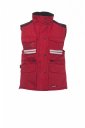 Vest med komfortabel passfor til dame, 8 mm plastglidelås med metalltrekker, med klaff og plastknapper, avtakbar og/eller sammenleggbar hette, grå refleksstriper foran og bak, luftehull i siden med kile og glidelås, ni ytterlommer, to med LOCK SYSTEM, to med glidelås og forsterket innside, en med vendbar merkeholder. Polstret, krage-, rygg- og korsryggvarmer i mikrofleece, innvendig snøring og glidelås for lettere trykk og brodering.
