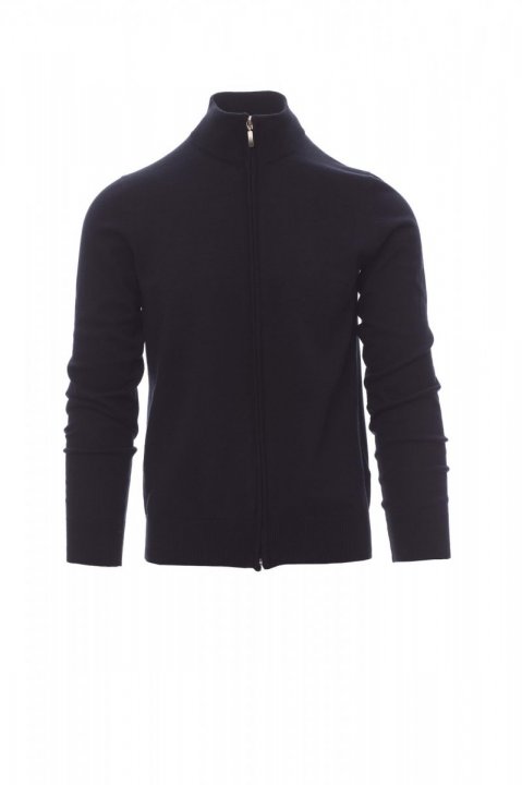 Unisex genser med glidelås i glattstrikk, sømløst utformet, finribbet krage, mansjetter og nederkanter, med albuelapper.