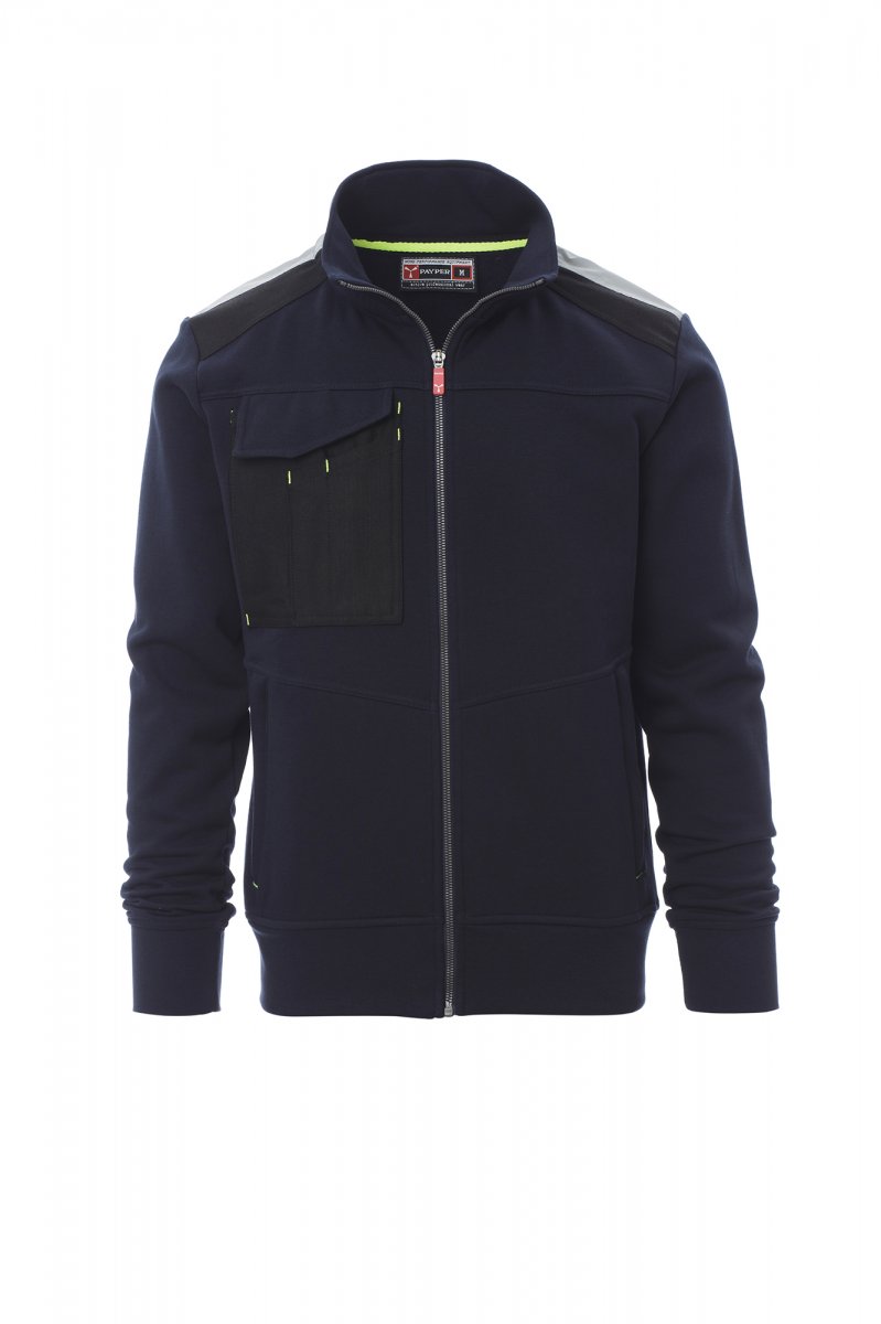 Genser til herre med hel SBS-glidelås i plast med «semi-autolock»-metalltrekker, to glidelåslommer, en multifunksjonsbrystlomme med skjult merkeholder og skjult lukkeklaff med LOCK SYSTEM, refleksstriper på skuldrene, elastisk ribbe i mansjetter og nederkant, dobbeltsømmer på krage, ermer og nederkant, og forsterket nakkebånd. Vannbestandig stoffbehandling.