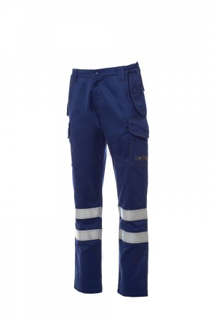 Antistatisk, syrenøytraliserende, flammehemmende, lysbuebestandige bukser egnet for sveisere, med to reflekterende striper, høyere formsydd midje bak for bedre dekning med elastiske sider og beltehemper i midjen; glidelås og trykknapp foran. Kontrastforsterkede doble sømmer på innerben, ytre ben og rygg. Klassisk snitt foran, to multifunksjonslommer pluss en glidelåslomme og to baklommer, alle med klaff og borrelås. Retro-reflekterende 3M-striper på baklomme.