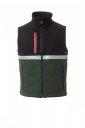 WP 8000 mm H₂O, WVT 5000 g/m² 24h. Męska 3-warstwowa kamizelka soft-shell z grubym ociepleniem (160g/m²) i kołnierzem z polarowymi wstawkami, zapinana na zamek błyskawiczny SBS z metalowym suwakiem „semi-autolock” i spersonalizowanym ściągaczem. Przedni pasek odblaskowy na klatce piersiowej. Dwie zapinane na zamek błyskawiczny kieszenie boczne i jedna na piersi zapinana na zamek błyskawiczny z detalami odblaskowymi. Element „Life-saving” na plecach, z wewnętrznym logo odblaskowym, zapinany na zamek błyskawiczny. Dwie wewnętrzne kieszenie: jedna profilowana z zamkiem błyskawicznym na prawej piersi i jedna na tablet zapinana na rzep po lewej stronie. Regulowany dół ze spersonalizowanymi stoperami.