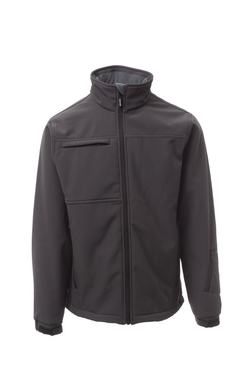 WP 8000 mm H₂O, WVT 5000 g/m² 24h. Męski 3-warstwowy soft-shell zapinany na wykończony taśmą zamek błyskawiczny SBS. Kaptur chowany w kołnierzu. Mankiety regulowane gumowanymi paskami na nadgarstek i rzepem. Dwie boczne kieszenie zapinane na zamek błyskawiczny, jedna kieszeń na piersi z chowanym uchwytem na identyfikator, jedna kieszeń na karnet narciarski na ramieniu, talia regulowana ściąganym sznurkiem.