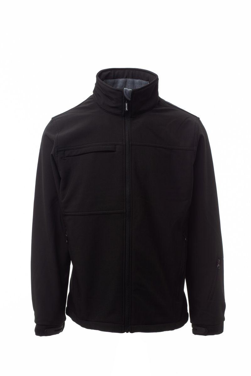 WP 8000 mm H₂O, WVT 5000 g/m² 24h. Męski 3-warstwowy soft-shell zapinany na wykończony taśmą zamek błyskawiczny SBS. Kaptur chowany w kołnierzu. Mankiety regulowane gumowanymi paskami na nadgarstek i rzepem. Dwie boczne kieszenie zapinane na zamek błyskawiczny, jedna kieszeń na piersi z chowanym uchwytem na identyfikator, jedna kieszeń na karnet narciarski na ramieniu, talia regulowana ściąganym sznurkiem.