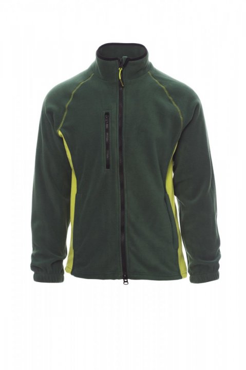 Polar męski w dwóch odcieniach, z czarnym plastikowym zamkiem błyskawicznym 8 mm, rękawy raglanowe, regulowany sznurek w pasie, mankiety elastyczne, dwie kieszenie z ukrytym zamkiem błyskawicznym, jedna kieszeń na zamek błyskawiczny z przodu, dekolt wykończony kontrastową taśmą wzmacniającą, wzmocnione szwy.