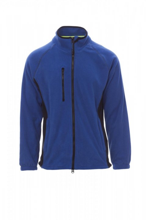 Polar męski w dwóch odcieniach, z czarnym plastikowym zamkiem błyskawicznym 8 mm, rękawy raglanowe, regulowany sznurek w pasie, mankiety elastyczne, dwie kieszenie z ukrytym zamkiem błyskawicznym, jedna kieszeń na zamek błyskawiczny z przodu, dekolt wykończony kontrastową taśmą wzmacniającą, wzmocnione szwy.