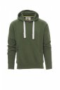 Bluza męska z kapturem, z podwójnymi szwami i białym sznurkiem, z kontrastowymi przeszyciami i kółkami metalowymi, rękawy raglanowe, obszycie kołnierzyka w serek, kieszenie-kangurki, kieszonka na zamek błyskawiczny, mankiety i dół ze ściągaczem, wzmocnione szwy.