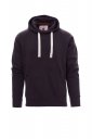 Bluza męska z kapturem, z podwójnymi szwami i białym sznurkiem, z kontrastowymi przeszyciami i kółkami metalowymi, rękawy raglanowe, obszycie kołnierzyka w serek, kieszenie-kangurki, kieszonka na zamek błyskawiczny, mankiety i dół ze ściągaczem, wzmocnione szwy.