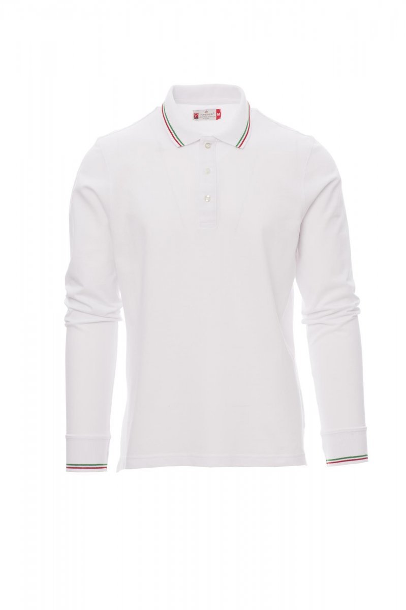 Koszulka polo unisex z krótkim rękawem, 3 guziki w pasującym kolorze, kontrastowe wykończenie kołnierzyka i rękawów (kolory flagi), kołnierzyk i mankiety ze ściągaczem, rozcięcia boczne, zasłonięte szwy na kołnierzyku, boczna taśma wzmacniająca, taśma w obszyciu wewnętrznym kołnierzyka.