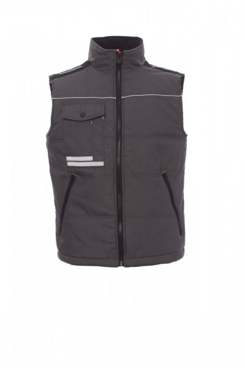 Kamizelka unisex z 8 mm plastikowym zamkiem błyskawicznym z metalowym suwakiem, wyprofilowane plecy, dwie przestronne kieszenie zewnętrzne z zamkiem błyskawicznym, wielofunkcyjna przestronna kieszeń na klatce piersiowej, kieszonka na smartfon, odblaskowe paski, pierścień na identyfikator
