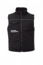 Kamizelka unisex z 8 mm plastikowym zamkiem błyskawicznym z metalowym suwakiem, wyprofilowane plecy, dwie przestronne kieszenie zewnętrzne z zamkiem błyskawicznym, wielofunkcyjna przestronna kieszeń na klatce piersiowej, kieszonka na smartfon, odblaskowe paski, pierścień na identyfikator