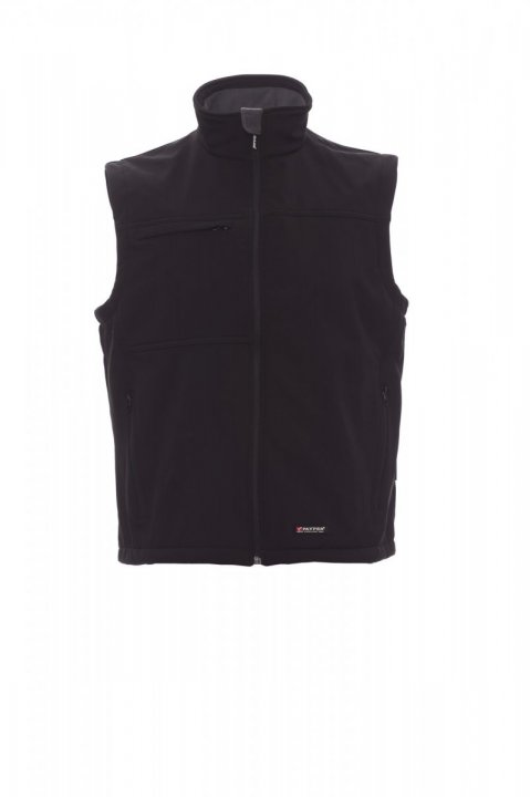 WP 8000 mm H₂O, WVT 5000 g/m² 24h. Męska kamizelka soft-shell, 3-warstwowa, zapinana na zamek błyskawiczny SBS. Dwie kieszenie boczne z zamkiem błyskawicznym, jedna kieszeń z chowanym uchwytem na identyfikator, sznurek w pasie. Jedna kieszeń wewnętrzna i dwa zamki błyskawiczne ułatwiające wykonanie nadruku i haftu na klatce piersiowej i ramionach.