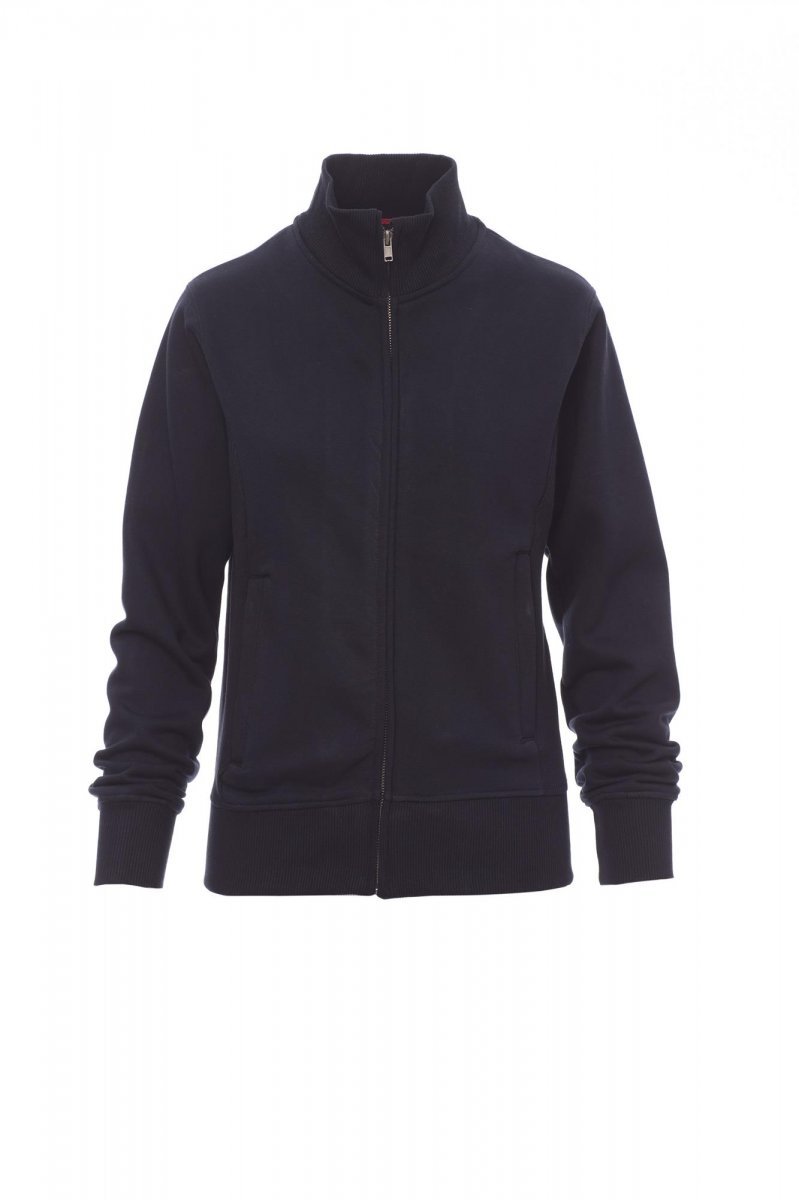 Bluza damska dopasowana, rozpinana, zamek błyskawiczny metalowy SBS z pojedynczym suwakiem, ściągacz po bokach, dwie kieszenie z zamkiem błyskawicznym, mankiety, dół i kołnierz wewnętrzny ze ściągaczem, wzmocnione szwy.