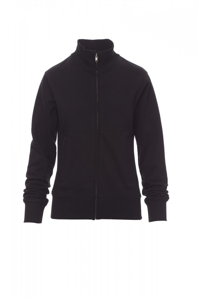 Bluza damska dopasowana, rozpinana, zamek błyskawiczny metalowy SBS z pojedynczym suwakiem, ściągacz po bokach, dwie kieszenie z zamkiem błyskawicznym, mankiety, dół i kołnierz wewnętrzny ze ściągaczem, wzmocnione szwy.