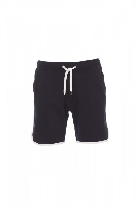 Spodenki dresowe męskie ze ściągaczem i sznurkiem w talii, rozporek z zamkiem błyskawicznym, dwie kieszenie z przodu i kontrastowe obszycie.