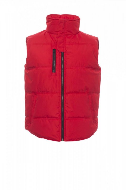 Wyściełana kamizelka (160g/m²), z mikropolarem w kontrastującym kolorze, zapinana na zamek błyskawiczny 8 mm z tworzywa sztucznego z metalowym suwakiem. Dwie boczne kieszenie i jedna na piersi z zamkiem błyskawicznym.
