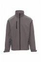 WP 8000 mm H₂O, WVT 5000 g/m² 24h. Męski 3-warstwowy soft-shell zapinany na wykończony taśmą zamek błyskawiczny SBS. Elastyczne mankiety regulowane rzepem. Dwie zewnętrzne kieszenie zapinane na zamek błyskawiczny.