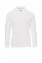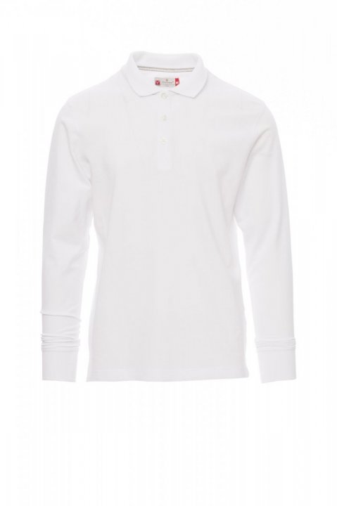 Koszulka polo męska, z długim rękawem, z 3 pasującymi guzikami z efektem masy perłowej, kołnierzyk i mankiety ze ściągaczem, rozcięcia boczne, zasłonięte szwy kołnierzyka z kontrastową taśmą, szwy elastyczne, boczna taśma wzmacniająca, taśma w obszyciu wewnętrznym kołnierzyka.
