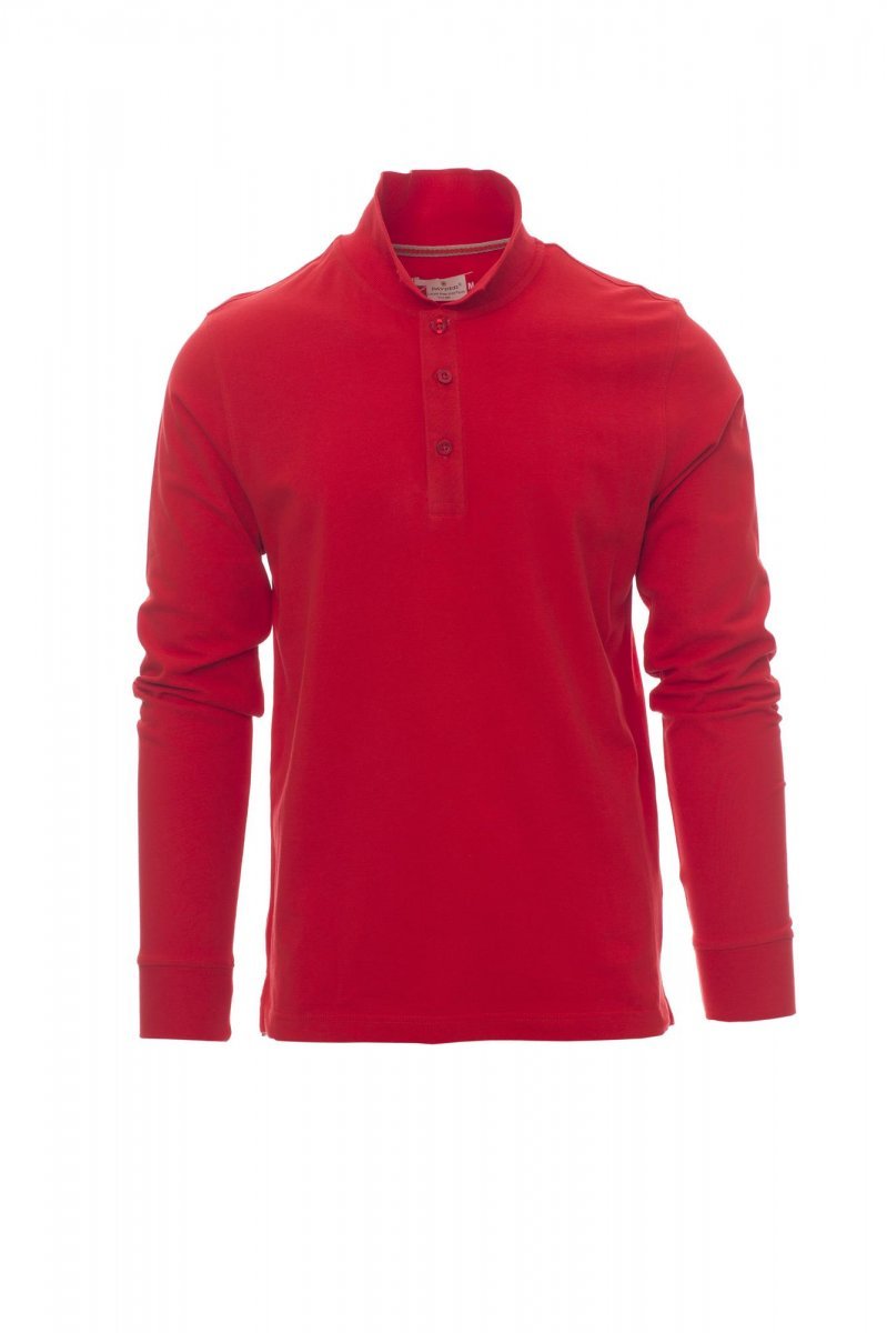 Koszulka polo męska, z długim rękawem, z 3 pasującymi guzikami z efektem masy perłowej, kołnierzyk i mankiety ze ściągaczem, rozcięcia boczne, zasłonięte szwy kołnierzyka z kontrastową taśmą, szwy elastyczne, boczna taśma wzmacniająca, taśma w obszyciu wewnętrznym kołnierzyka.