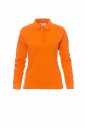 Koszulka polo damska, dopasowana, z długim rękawem, z 4 pasującymi guzikami z efektem masy perłowej, kołnierzyk i krawędzie rękawów ze ściągaczem, rozcięcia boczne, zasłonięte szwy kołnierzyka z kontrastową taśmą, szwy elastyczne, boczna taśma wzmacniająca, taśma w obszyciu wewnętrznym kołnierzyka.