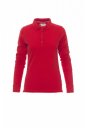 Koszulka polo damska, dopasowana, z długim rękawem, z 4 pasującymi guzikami z efektem masy perłowej, kołnierzyk i krawędzie rękawów ze ściągaczem, rozcięcia boczne, zasłonięte szwy kołnierzyka z kontrastową taśmą, szwy elastyczne, boczna taśma wzmacniająca, taśma w obszyciu wewnętrznym kołnierzyka.