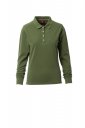 Koszulka polo damska, dopasowana, z długim rękawem, z 4 pasującymi guzikami z efektem masy perłowej, kołnierzyk i krawędzie rękawów ze ściągaczem, rozcięcia boczne, zasłonięte szwy kołnierzyka z kontrastową taśmą, szwy elastyczne, boczna taśma wzmacniająca, taśma w obszyciu wewnętrznym kołnierzyka.