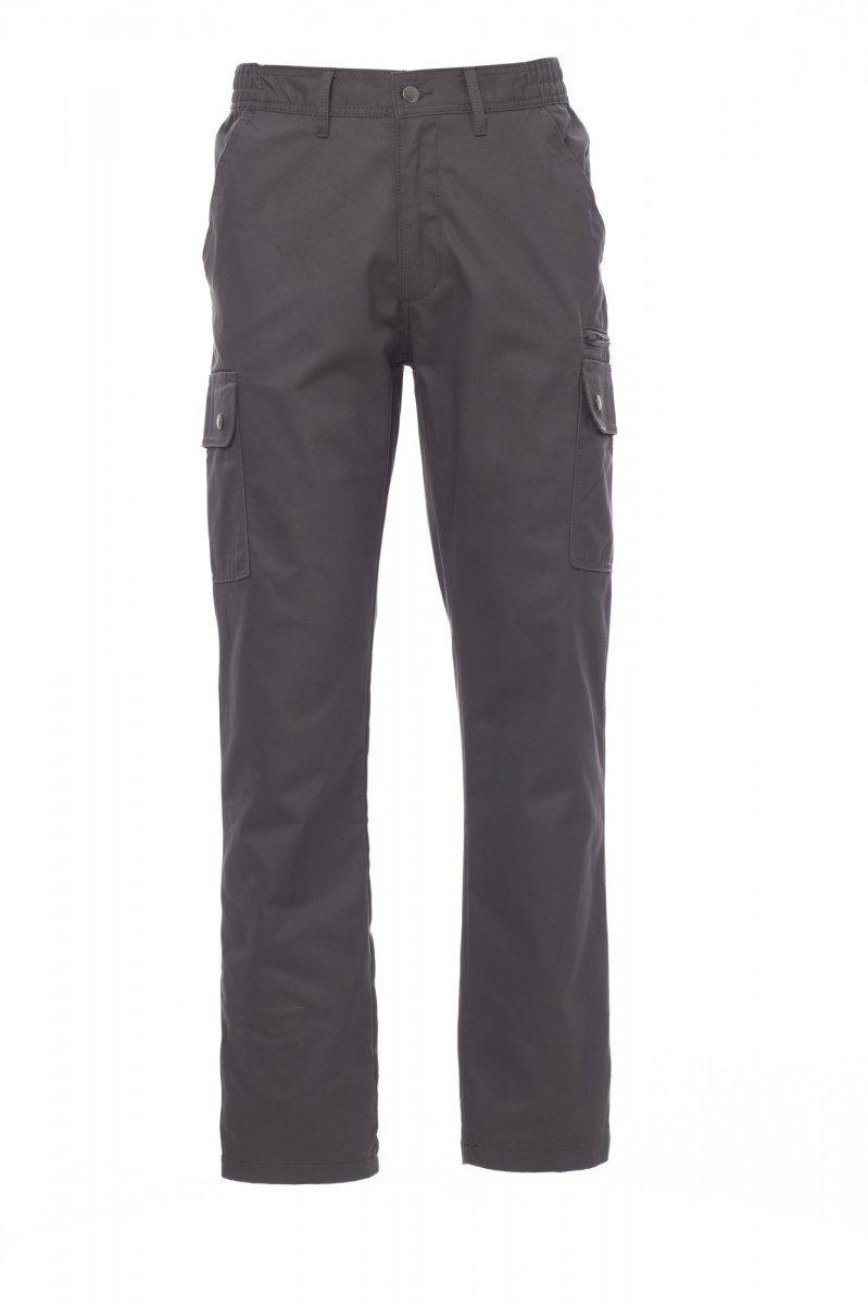 Spodnie męskie, zimowe, z podszewką z flaneli poliestrowej (gramatura 110 g/m²), gumki z boku i szlufki w talii, zapinane na zamek błyskawiczny i guzik z metalu, z przodu dwie kieszenie o kroju klasycznym, dwie kieszenie boczne z patką i zatrzaskiem, z lewej strony kieszeń zapinana na zamek błyskawiczny, z prawej chowana kieszeń na taśmę mierniczą, z tyłu dwie wpuszczane kieszenie z pętelką i guzikiem.