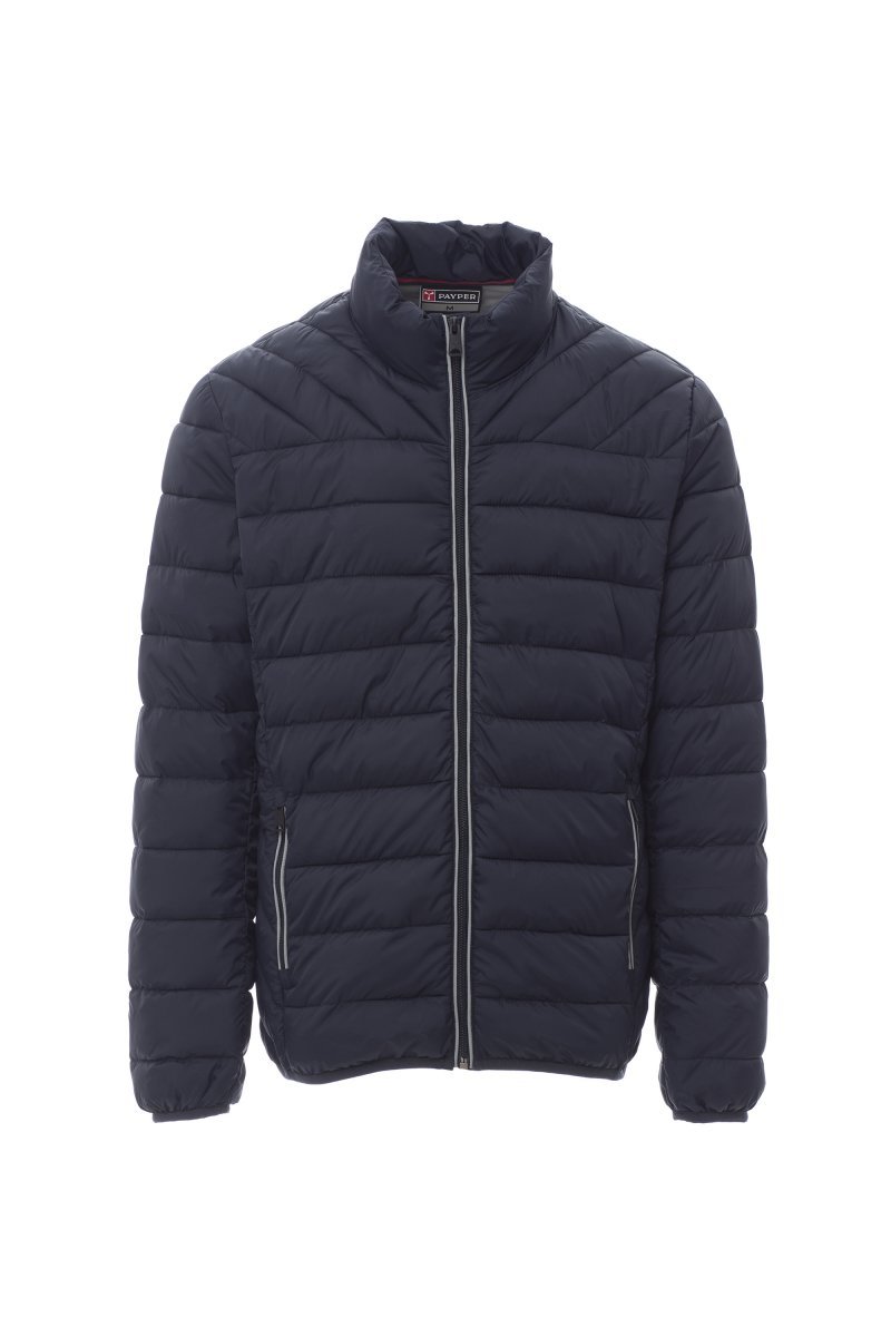 Męska kurtka puchowa z wyściółką z wolnych włókien (160g/m²), zapinana na zamek błyskawiczny 5 mm z tworzywa sztucznego z metalowym suwakiem. Mankiety i talia z wąską lamówką. Dwie zewnętrzne kieszenie zapinane na zamek błyskawiczny. Odblaskowa lamówka na zamku błyskawicznym. Dwie kieszenie wewnętrzne.