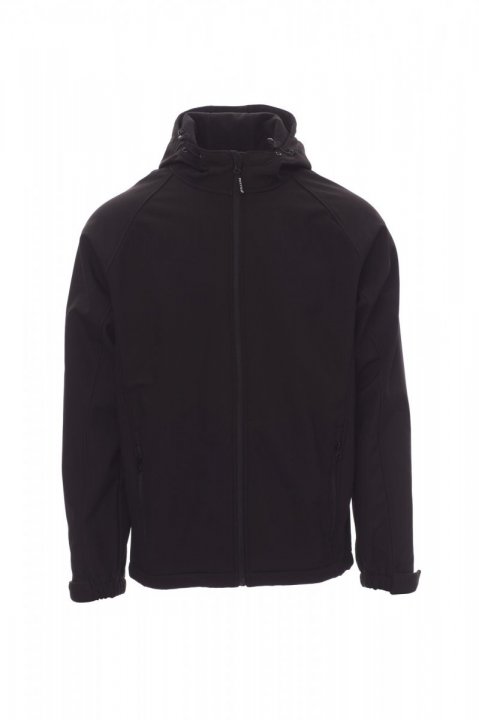 WP 8000 mm H₂O, WVT 5000 g/m² 24h. Męski 3-warstwowy soft-shell z raglanowym rękawem, zapinany na wykończony taśmą zamek błyskawiczny SBS z metalowym suwakiem. Profilowany kaptur z dwoma przeszyciami i sznurkiem ściągającym ze stoperami. Elastyczne mankiety regulowane paskami na nadgarstkach na rzep. Dwie zewnętrzne kieszenie zapinane na zamek błyskawiczny.